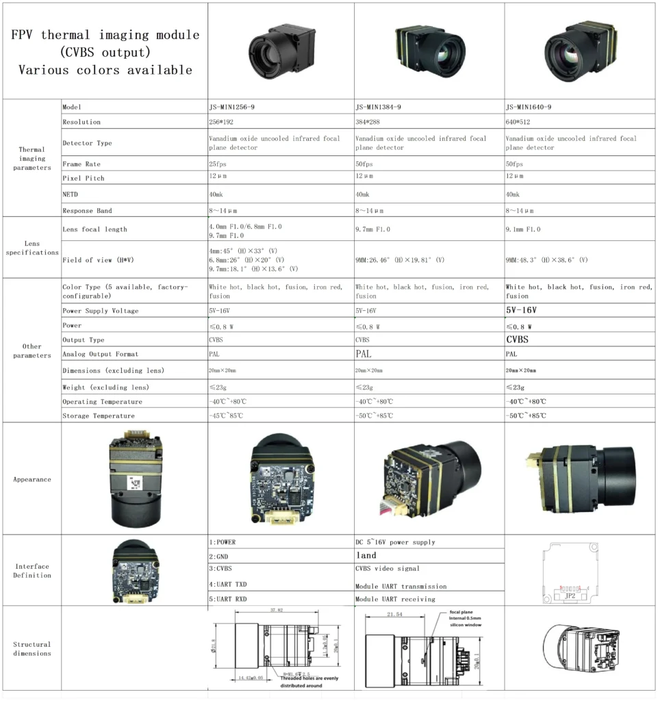 New Thermal 640*512 OEM CVBS/USB 9mm Analog Interface Camera Module High Resolution FPV Thermal Imager